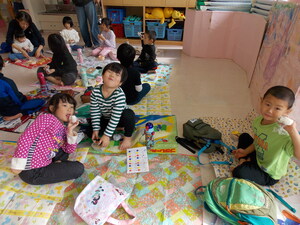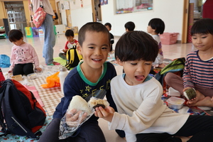 外は雪虫がいっぱいいたので、おにぎりは保育園のホールで食べました!