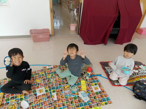 「じゅうたんみたい」と靴で感触を確かめる子ども達♪