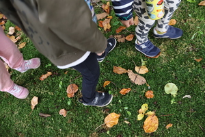 落ち葉を踏みしめたり、木の実を拾ったりと秋の自然に親しんでいます🍁