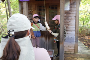 今日のお当番さんが代表してカラン!カラン!とお参り♪