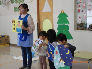 クリスマス会、おせちのお話し、大掃除、クラスのお楽しみ会と