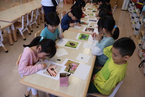 難しいな💦とみ~んな言いながらも写真を見て、形や細かい所を黒ペンでしっかり描いてましたよ✨