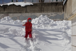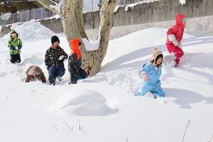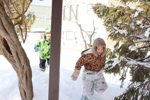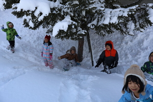 秘密基地のように大きな樹の下に隠れている?(休憩してる?)ことも達。上から雪が落ちてくるよ~の声に慌ててました( *´艸`)