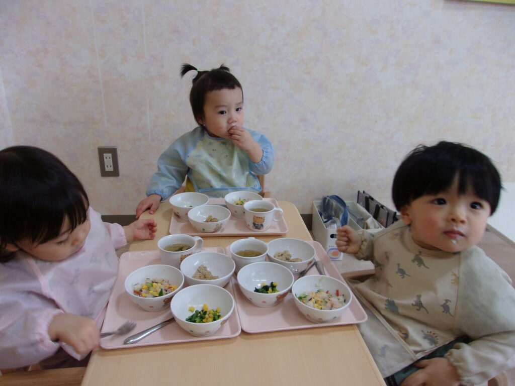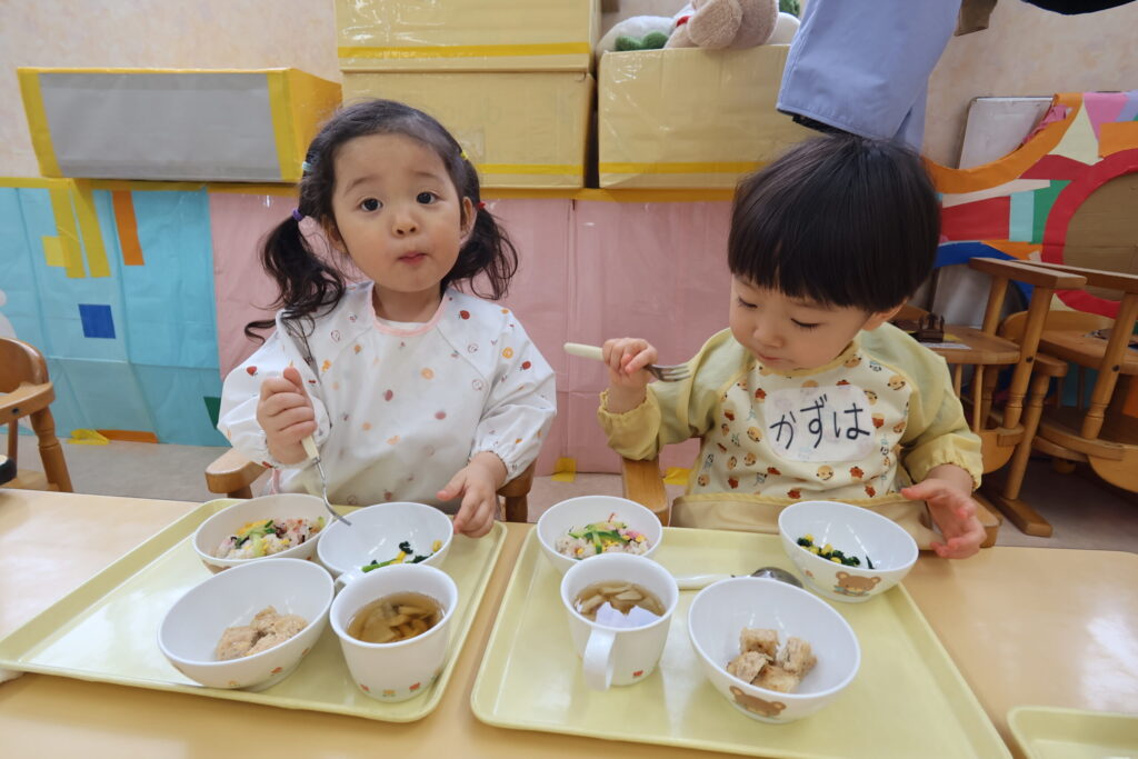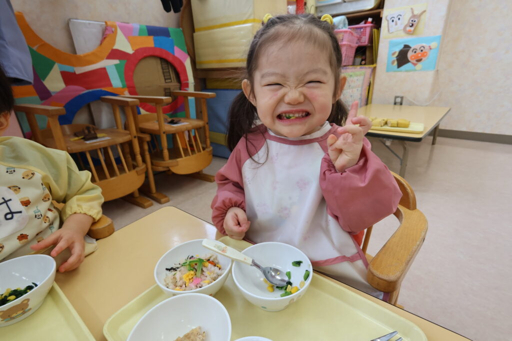 その後はお部屋ではひな祭りメニューの給食♪いつもと違った給食に笑顔いっぱい💕