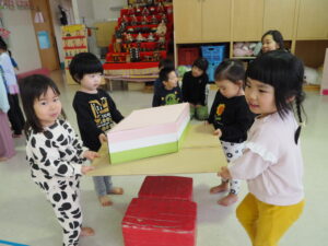 お友達と協力して運びました☺