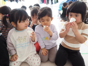 みんなでお話を聞いたり、ひしもちリレーをしましたよ!